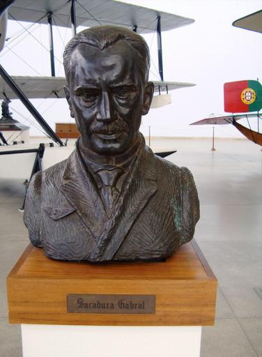 Keywords: Sacadura cabral.JPG pt Museu de Marinha de Lisboa busto de Sacadura Cabral bronze own Carlos Luis M C da Cruz 2011-07-24 Sacadura Cabral Busts in Lisbon Statues of aviators Fairey III Portuguese Air Force