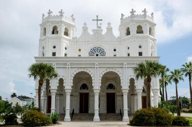 Keywords: sacred heart church church usa america texas galveston historically religion landmark catholic architecture building palm trees