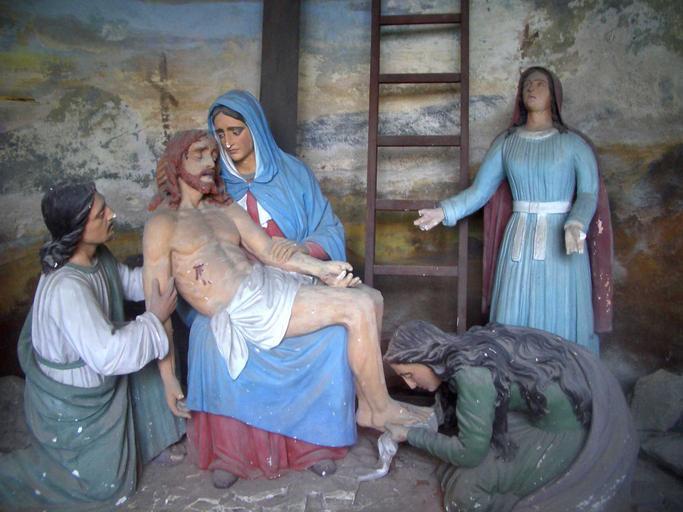 | Keywords: Sacro Monte Belmonte Deposizione.JPG Santuario di Belmonte Turin Italy The Descent from the Cross clay statues XVIII century 2007-03-03 own assumed Laurom Sacro Monte Belmonte 18th-century statues in Italy Terracottas in Italy Belmonte Sculptures of the descent from the cross |