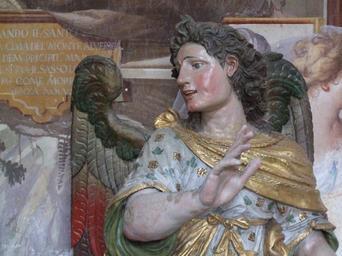 | Keywords: Sacro Monte di Orta 020.JPG Life of St Francis of Assisi depicted in the series of chapels of the Sacro Monte di Orta in the comune of Orta San Giulio Piedmont Northern Italy Own Mattana 2009-04-09 Images by Mattana-Orta Italy Sacro Monte Orta “ Chapel 10 Victory of Saint Francis over Temptation Statues of angels in Italy |