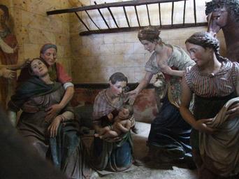 Keywords: Sacro Monte di Orta 022.JPG Birth of St Francis from Life of St Francis of Assisi depicted in the series of chapels of the Sacro Monte di Orta in the comune of Orta San Giulio Piedmont Northern Italy Own Mattana 2009-04-09 Images by Mattana-Orta Italy Sacro Monte Orta “ Chapel 1 Birth of Saint Francis