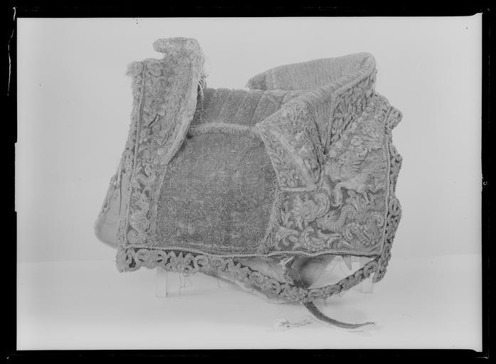 | Keywords: Sadel, Frankrike, 1600-talets mitt - Livrustkammaren - 53323.tif LSH artwork sv Sadel av ursprungligen röd couleur de feu numera blekt sammet med reliefbroderi med guld- och silvertråd i form av rankor och blad Sitsen med tunna rankor med silvertråd samt kantad med frans av silvertråd Rektangulära kappor fodrade med läder med konturerad kantbård av rankor i reliefbroderi Frambom b 470 mm h 90 mm bakbom b 530 mm h 100 mm med stödbommar Bommarnas insidor med tunna vertikala bladbroderier Bom överklädd med tunt läder fyra par stroppar av vitt och brunt läder för sadelgjord Dubbla krampor av stål för stigläder Bossor av naturfärgat linne fodrade med läder Framför bakbommen 8+11 bakom bakbommen 9+11 gjutna förgyllda mässingstännlikor med dekor i form av en trofégrupp - harnesk framför korslagda fanor Sadelknapp oval framåt utdragen av förgylld mässing reliefdekor i form av på ovansidan trofégrupp bakom manshuvud samt mansmaskaron på sidorna bladrankor På ovansidan en gjuten oval bygel Två krampor för fästning av hölster den ena av stål den andra av förgylld gjuten mässing Baktill en läderstropp för svansrem original caption ca 1670 size mm 300 sits size mm 530 LRK Karl XI av Sverige Kung Sol i Sverige 1986 place of origin original filename LN_B16726_019606 45742 inventory number LRK 9146 53323 CC0 Sadel Frankrike 1600-talets mitt - Livrustkammaren - 53323-negative tif <gallery caption Different images of same object > File Sadel Frankrike 1600-talets mitt - Livrustkammaren - 27644 tif File Sadel Frankrike 1600-talets mitt - Livrustkammaren - 1960 tif File Sadel Frankrike 1600-talets mitt - Livrustkammaren - 70446 tif File Sadel Frankrike 1600-talets mitt - Livrustkammaren - 54079 tif File Sadel Frankrike 1600-talets mitt - Livrustkammaren - 19082 tif File Bomsadel Le Crillan - Livrustkammaren - 51306 tif File Sadel Frankrike 1600-talets mitt - Livrustkammaren - 34966 tif File Sadel Frankrike 1600-talets mitt - Livrustkammaren - 61884 tif File Sadel Frankrike 1600-talets mitt - Livrustkammaren - 79005 tif File Sadel Frankrike 1600-talets mitt - Livrustkammaren - 10520 tif </gallery> <gallery caption Related objects > File Pistolhölster sadelhölster - Livrustkammaren - 78496 tif LRK 17185 File Sadelgjord - Livrustkammaren - 59987 tif LRK 31227 File Schabrak fr gåvan - Livrustkammaren - 7256 tif LRK 31051 File Schabrak från 1670 cirka - Livrustkammaren - 30281 tif LRK 31051 File Pistolhölster sadelhölster - Livrustkammaren - 17844 tif LRK 17185 File Ländschabrak Frankrike 1600-talets mitt - Livrustkammaren - 52085 tif LRK 31051 </gallery> Saddles Media contributed by LSH dim-with multiple size templates Media contributed by LSH 2016-12 |