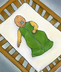 Keywords: infant sleep baby sleeping parenting crib safety safe breastfeeding nappss Baby is sleeping on her back on a firm, flat mattress in a crib, bassinet, or other safe space that is empty of blankets, bumpers and toys. Pacifiers may be introduced after breastfeeding is well established (i.e., it is easy for baby to latch on to the breast and get plenty of milk which is usually after the first few weeks). The pacifier is cordless and not attached to a stuffed toy or baby’s clothing. Learn more about creating a safe sleep environment to reduce the risk of SIDS and other sleep-related causes of infant death at safetosleep.nichd.nih.gov Illustration generously donated by First Candle. Baby is sleeping on her back on a firm, flat mattress in a crib, bassinet, or other safe space that is empty of blankets, bumpers and toys. Pacifiers may be introduced after breastfeeding is well established (i.e., it is easy for baby to latch on to the breast and get plenty of milk which is usually after the first few weeks). The pacifier is cordless and not attached to a stuffed toy or baby’s clothing. Learn more about creating a safe sleep environment to reduce the risk of SIDS and other sleep-related causes of infant death at safetosleep.nichd.nih.gov Illustration generously donated by First Candle.