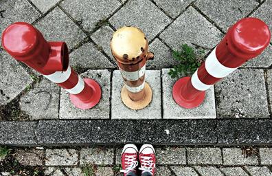 Keywords: safety barrier traffic red-white barrier movable post hazard feet curb sidewalk
