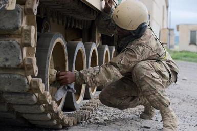 | Keywords: noble partner noblepartner army usareur u.s. army usarmy u.s. army europe usarmyeurope tanks war cannon 3id outdoor VAZIANI TRAINING AREA, Georgia — A Soldier assigned to 1st Battalion., 64th Armor Regiment, 1st Brigade, 3rd Infantry Division, inspects the track bolts on a Bradley Infantry Fighting Vehicle at Vaziani Training Area, Georgia, May 6, in preparation for Noble Partner 16. The exercise is scheduled to take place May 11 to 26 and will include approximately 1300 participants from the U.S., Georgia and the U.K. The exercise is a reoccurring training event that takes place at Vaziani Training Area, Georgia. Noble Partner 16 is a critical part of Georgia's training for its contribution of a light infantry company to the NATO Response Force (NRF) and enhances Georgian territorial self-defense capability. (Photo by Sgt. Daniel Cole, U.S. Army Europe Public Affairs) VAZIANI TRAINING AREA, Georgia — A Soldier assigned to 1st Battalion., 64th Armor Regiment, 1st Brigade, 3rd Infantry Division, inspects the track bolts on a Bradley Infantry Fighting Vehicle at Vaziani Training Area, Georgia, May 6, in preparation for Noble Partner 16. The exercise is scheduled to take place May 11 to 26 and will include approximately 1300 participants from the U.S., Georgia and the U.K. The exercise is a reoccurring training event that takes place at Vaziani Training Area, Georgia. Noble Partner 16 is a critical part of Georgia's training for its contribution of a light infantry company to the NATO Response Force (NRF) and enhances Georgian territorial self-defense capability. (Photo by Sgt. Daniel Cole, U.S. Army Europe Public Affairs) |
