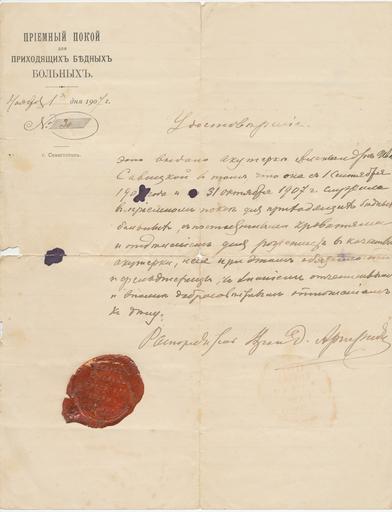 | Keywords: Sage-femme certifiée.jpg ru Удостове ение акуше ки п иёмного покоя для п иходящих бедных больных г Севастополя Удостове ение Это выдано акуше ке Александ е Ивановне Савицкой в том что она с 1 сентяб я 1905 года и по 31 октяб я 1907 г служила в п иемном покое для п иходящих бедных больных с постоянными к оватями и отделением для ожениц в качестве акуше ки неся п и этом обязанности и фельдше ицы с знанием отчетливым и вполне доб осовестным отношением к делу Распо ядитель 1907-11-01 <small><sub style color blue >chelo</sub></small>Vechek / <small><sup style color green >talk</sup></small> с о игинала из собственного а хива <small><sub style color blue >chelo</sub></small>Vechek / <small><sup style color green >talk</sup></small> from original in own archive <small><sub style color blue >chelo</sub></small>Vechek / <small><sup style color green >talk</sup></small> de l'original en propre archive П иёмный покой п иходящих бедных больных other versions Custom license marker 2016 11 13 PD-Russia-2008 PD-RU-exempt documents PD-trivial Vasily Veselago Midwifery November 1907 Sealing wax Scanned with Canon Pixma MP970 |