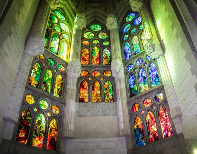 Keywords: sagrada familia cathedral barcelona architecture church famous religion catholicism landmark spain gothic construction europe christianity interior stained glass
