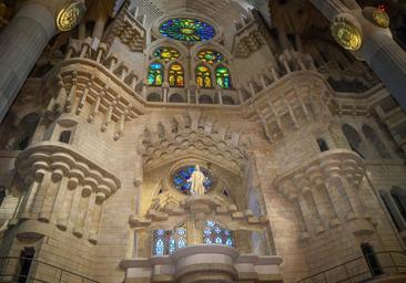 Keywords: sagrada familia cathedral barcelona architecture church famous religion catholicism landmark spain gothic construction europe christianity interior stained glass statue
