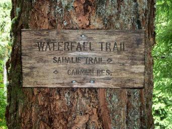 Keywords: sahalie falls carmen reservoir trail hiking waterfall mckenzie river nature water green landscape river scenic summer woods hike sign forest backpack outdoor recreation tourist