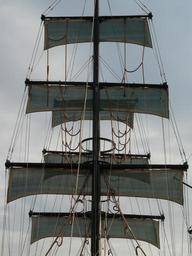 Keywords: sail ship sailing vessel hoist hoisted rigging good standing running well masts cordage shrouds stage spars blocks pods boot sailing boat