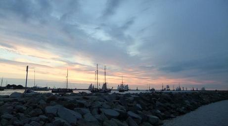 Keywords: sailboat chandler motion warnemunde pier beach resort reholidayssort summer dawn sunset stone rock