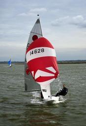 Keywords: sailboat sail red spinaker yachtsmen norsey island essex uk recreational activity water sports wind