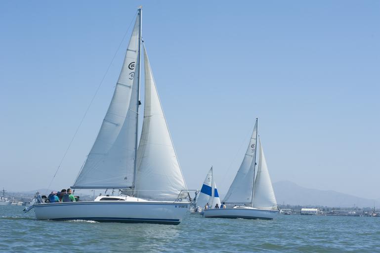 Keywords: sailboats sailing water ocean sea yacht boat blue sky vessel marine wind