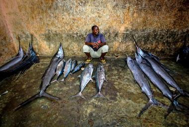 Keywords: sailfish fish selling fish fish market tuna man smile big fish person fisherman male happy catch smiling