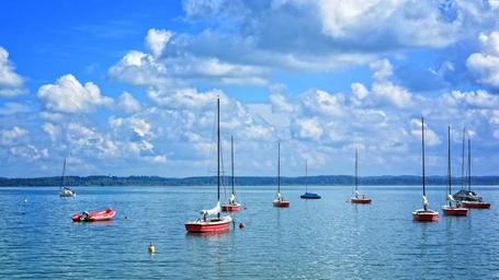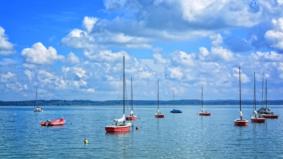 Keywords: sailing boats port boats boat masts masts lake chiemsee anchorage anchor quiet sailing vessel still sky clouds blue maritime rest sea concerns coast idyll water peaceful relaxed leisure recovery nature landscape upper bavaria