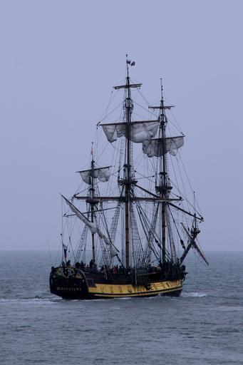 Keywords: sailing vessel ship sail water historically sea masts clouds sky ocean