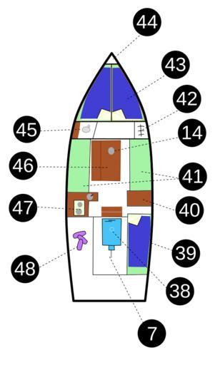 | Keywords: Sailingyacht-numbers-interior.svg de Teile einer Segelyacht - Innenansicht en Parts of a sailing yacht - interior 2015-12-29 own PaterMcFly other versions cc-zero Names of parts of rig or sails Drawings of sailboats Theory of sailing Diagrams labelled with numbers only |