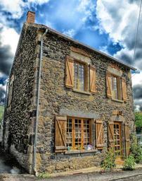 Keywords: saillant france house home stone windows architecture wood shutters outside sky clouds hdr