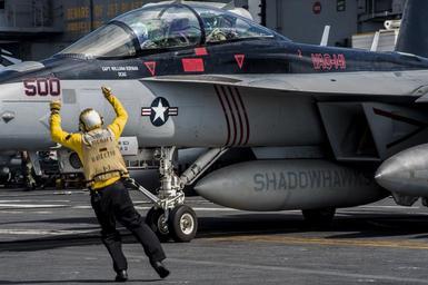 | Keywords: Sailor directs an E-A-18G aboard USS George Washington. (10193352754).jpg WATERS TO THE EAST OF THE KOREAN PENINSULA Oct 9 2013 An aircraft handler directs an E/A-18G Growler from the Shadowhawks of Electronic Attack Squadron VAQ 141 aboard the aircraft carrier USS George Washington CVN 73 George Washington and its embarked air wing Carrier Air Wing CVW 5 provide a combat-ready force that protects and defends the collective maritime interest of the U S and its allies and partners in the Indo-Asia-Pacific region U S Navy photo by Mass Communication Specialist Liam Kennedy/Released 131009-N-BD107-122 Join the conversation http //www facebook com/USNavy www facebook com/USNavy http //www twitter com/USNavy www twitter com/USNavy http //navylive dodlive mil navylive dodlive mil http //www flickr com/photos/usnavy/10193352754/ Sailor directs an E/A-18G aboard USS George Washington 2013-10-09 11 43 http //www flickr com/people/56594044 N06 Official U S Navy Page from United States of America MCSN Liam Kennedy/U S Navy Attribution License IPTC Caption-Abstract U S Navy photo PD-USGov-Military-Navy Official U S Navy Imagery http //flickr com/photos/56594044 N06/10193352754 2014-04-03 13 02 54 cc-by-2 0 USS George Washington CVN-73 flight deck EA-18G Growler on flight decks Files uploaded by Russavia Electronic Attack Squadron 141 United States Navy 2013 in aviation |