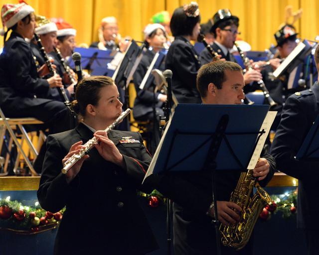 | Keywords: Sailor plays with Japan Air Self-Defense Force Band 131207-N-DP652-002.jpg en Information Systems Technician 2nd Class Carrie Roberts originally from Maynardville Tenn and stationed aboard Naval Computer and Telecommunications Station Far East Detachment Misawa plays the flute during a concert with Japanese Air Self-Defense Force's Northern Air Defense Band Dec 7 The Northern Air Defense Band and U S service members collaborated to perform a holiday concert on board Misawa Air Base for personnel and family members U S Navy photo by Mass Communication Specialist 3rd Class Erin Devenberg/RELEASED 2013-12-07 Petty Officer 3rd Class Erin Devenberg https //www dvidshub net/image/1067747 131207-N-DP652-002 2013-12-07 23 01 MISAWA AOMORI JP PD-USGov-Military-Navy Misawa Air Base Images from DoD uploaded by Fæ |