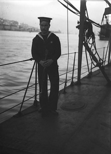 | Keywords: Sailor (Portugal).jpg Information_field GEH record <blockquote> Chusseau-Flaviens Ch French active 1890s-1910s DESCRIPTIVE TITLE Portugal sailor ca 1900-1919 negative gelatin on glass 15 x 11 cm Gift of Kodak Pathe 75 0111 1592 INSCRIPTION Portugal sailor NOTES CATALOGUED 12/88 JBM SUBJECT occupation naval </blockquote> Institution George Eastman House http //www geh org/ar/chus/portugal/m197501111592_ful html http //www geh org/ar/strip08/m197501111592 jpg between 1905-10-27 circa 1915 01 š 🛈 Charles Chusseau-Flaviens see below Information_field 1st uploaded as the 24 632 103<sup>th</sup> file in Wikimedia Commons Lic PD-old Black and white photographic portraits in Portugal Photographs of Portugal by Charles Chusseau-Flaviens Intentional camera tilt Photographs in the George Eastman House Collection Black and white photographs of Lisbon Tagus River in Lisbon Sailors at sea Sailors from Portugal Ships in Lisbon Lisbon in the 1900s Lisbon in the 1910s Black and white photographs of ships 20th-century black and white portrait photographs of standing men at full length Sailor suits |
