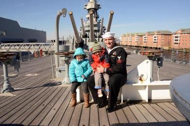 | Keywords: Sailor poses for photo aboard battleship USS Wisconsin 150213-N-GM095-006.jpg en Information Systems Technician 2nd Class Steven Sibenaller stationed aboard the Nimitz-class aircraft carrier USS Abraham Lincoln CVN 72 poses for a photo with his children aboard battleship USS Wisconsin BB-64 following his re-enlistment Feb 13 Lincoln is undergoing refueling and complex overhaul at Newport News Shipbuilding U S Navy photo by Mass Communication Specialist 2nd Class Rusty Pang/Released 2015-02-13 Petty Officer 2nd Class Rusty Pang https //www dvidshub net/image/1833684 150213-N-GM095-006 2015-03-24 14 10 US PD-USGov-Military-Navy USS Abraham Lincoln CVN-72 Images from DoD uploaded by Fæ |