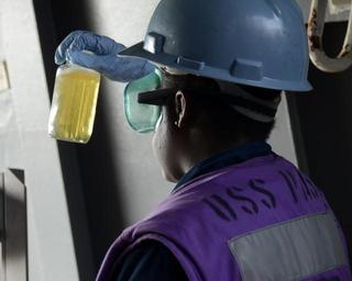| Keywords: Sailor tests fuel quality 140329-N-HB951-170.jpg en Engineman 2nd Class Kenyetta Alston from Washington D C tests diesel fuel marine DFM quality for contaminates during an underway replenishment at sea with Military Sealift Command fleet replenishment oiler USNS Joshua Humphreys T-AO 188 aboard the amphibious transport dock ship USS Mesa Verde LPD 19 Mesa Verde is a part of the Bataan Amphibious Ready Group and with the embarked 22nd Marine Expeditionary Unit is deployed in support of maritime security operations and theater security cooperation efforts in the U S 5th Fleet area of responsibility U S Navy photo by Seaman Phylicia A Hanson/Released 2014-03-29 Seaman Phylicia Hanson https //www dvidshub net/image/1579725 140329-N-HB951-170 2014-09-29 16 18 USS MESA VERDE AT SEA PD-USGov-Military-Navy 22nd Marine Expeditionary Unit USS Mesa Verde LPD-19 Images from DoD uploaded by Fæ |