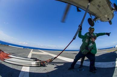 | Keywords: Sailors attach cargo to a helicopter. (10875915285).jpg PHILIPPINE SEA Nov 15 2013 Logistics Specialist Seaman Nick Fleming from Gillette Wyo front and Logistics Specialist 3rd Class Kyle Shy from Gardena Calif run to safety after attaching cargo legs to an MH-60S Sea Hawk helicopter from the Island Knights of Helicopter Sea Combat Squadron HSC 25 on the flight deck of the aircraft carrier USS George Washington CVN 73 during a replenishment-at-sea with the Military Sealift Command dry cargo and ammunition ship USNS Charles Drew T-AKE 10 in support of Operation Damayan The George Washington Strike Group supports the 3rd Marine Expeditionary Brigade to assist the Philippine government in response to the aftermath of the Super typhoon Haiyan in the Republic of the Philippines U S Navy photo by Mass Communication Specialist 2nd Class Trevor Welsh/Released 131115-N-ZS026-268 Join the conversation http //www navy mil/viewGallery asp www navy mil/viewGallery asp http //www facebook com/USNavy www facebook com/USNavy http //www twitter com/USNavy www twitter com/USNavy http //navylive dodlive mil navylive dodlive mil http //pinterest com pinterest com https //plus google com plus google com http //www flickr com/photos/usnavy/10875915285/ Sailors attach cargo to a helicopter 2013-11-15 17 00 http //www flickr com/people/56594044 N06 Official U S Navy Page from United States of America MC2 Trevor Welsh/U S Navy Attribution License XMP-photoshop Instructions Navy Visual News Service PD-USGov-Military-Navy Official U S Navy Imagery http //flickr com/photos/56594044 N06/10875915285 2014-04-03 12 54 26 cc-by-2 0 USS George Washington CVN-73 flight deck MH-60S Seahawk 2013 in aviation Files uploaded by Russavia Helicopter Sea Combat Squadron 25 United States Navy |
