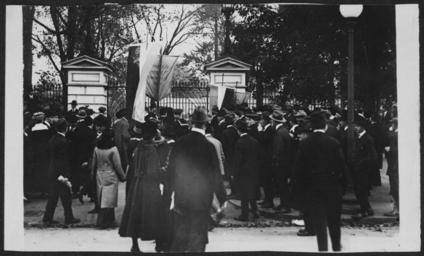 | Keywords: Sailors attacking pickets, 1917 160020v.jpg Photograph of a large crowd of people on sidewalk and city street including sailors facing picketing suffragists who hold banners at gates of the White House Title transcribed from item 1 photograph print; 4 x 7 in accession number Call Number Location National Woman's Party Records Group I Container I 160 Folder Pickets 1917 Source Collection Records of the National Woman's Party institution Library of Congress Manuscript Division http //hdl loc gov/loc mss/mnwp 160020 PD-Harris-Ewing Suffragettes 1917 in Washington D C Demonstrations and protests in Washington D C |