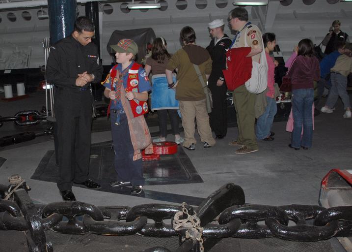 | Keywords: Sailors Explain the Inner Workings of the Forecastle to Boy Scouts DVIDS80224.jpg en Aboard command ship USS Blue Ridge LCC 19 Petty Officer Herbert E Tejeda-Martinez Ship Storekeeper Seaman explains the inner workings of the Forecastle to a member of Cub Scout Pack 51 The tour shows scouts what Sailors do where they work and how they live 2007-12-09 Michael Meyers https //www dvidshub net/image/80224 071209-N-+++++-062 2008-03-12 15 08 YOKOSUKA JP PD-USGov-Military-Navy USS Blue Ridge LCC-19 Images from DoD uploaded by Fæ |