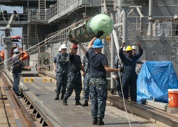 | Keywords: Sailors move a torpedo. (8199141341).jpg POLARIS POINT Guam Nov 15 2012 Sailors from the submarine tender USS Frank Cable AS 40 guide a Mark 48 ADCAP Advanced Capability torpedo across the ship's deck after it was hoisted off the Los Angeles-class attack submarine USS Oklahoma City SSN 723 Frank Cable conducts maintenance and support of submarine and surface vessels deployed in the U S 7th Fleet area of responsibility U S Navy photo by Mass Communication Specialist 1st Class Ricardo Danan/Released 121115-N-BE353-065 Join the conversation http //www facebook com/USNavy www facebook com/USNavy http //www twitter com/USNavy www twitter com/USNavy http //navylive dodlive mil navylive dodlive mil https //www flickr com/photos/usnavy/8199141341/ Sailors move a torpedo 2012-11-15 11 24 https //www flickr com/people/56594044 N06 Official U S Navy Page from United States of America PD-USNavy Official U S Navy Imagery https //flickr com/photos/56594044 N06/8199141341 2016-12-14 01 04 40 United States Government Work Naval ships of the United States Files from the U S Navy Flickr stream Files uploaded by Reguyla United States Navy |