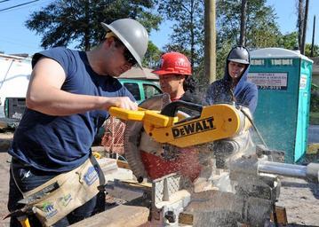 | Keywords: Sailors volunteer with Habitat for Humanity 121107-N-NY920-023.jpg en Religious Programs Specialist 3rd Class Gardiel Martinez a Habitat for Humanity volunteer from the multipurpose amphibious assault ship USS Bataan helps build duplexes during a community service project while his ship is in port Naval Station Mayport for the Week of Valor Bataan will be the location for the upcoming Navy-Marine Corps Classic basketball game between the University of Florida and Georgetown University Nov 9 The game honors veterans active and reserve service members and military families America's away team the Navy and Marine Corps are reliable flexible and ready to respond worldwide on above and below the sea as well as ashore Join the conversation in social media using BBallOnDeck 2012-11-07 LHD 5 https //www dvidshub net/image/779230 121107-N-NY920-023 2012-11-09 07 30 JACKSONVILLE FL US PD-USGov-Military-Navy Naval Station Mayport Images from DoD uploaded by Fæ |