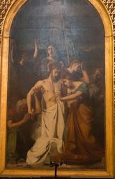 | Keywords: Saint Étienne-Église Sainte Marie-Descente de Croix-20160406.jpg Artwork Creator Théodore Chassériau LangSwitch Deposition of Christ A woman raises her arms in despair Saint John surrenders to his pain the Virgin tries to remove the crown of thorns looking skyward with a lack of understanding Joseph of Arimathea and Mary Magdalene hide the wounds of his body so that it seems intact John 19 38 Luke 11 53 p m Mark 15 46 Matthew 27 59 Deposición de Cristo Una mujer levanta los brazos en la desesperación San Juan se entrega a su dolor la Virgen intenta quitar la corona de espinas con una mirada de incomprensión hacia el cielo José de Arimatea y MarÃa Magdalena ocultan las heridas de su cuerpo por que lo parece intacto Juan 19 38 Lucas 23 53 Marcos 15 46 Mateo 27 59 Déposition du Christ Une femme lève les bras en signe de désespoir Saint jean s ™abandonne à sa douleur la Vierge tente d ™enlever la couronne d ™Ã©pines en levant vers le ciel un regard d ™incompréhension Joseph d ™Arimathie et Marie-Madeleine cachent les plaies de son corps afin qu ™il paraissent intact Jean 19 38 Luc 23 53 Marc 15 46 Matthieu 27 59 1842 Technique oil canvas place of discovery object history exhibition history LangSwitch Furniture for St Mary of the Visitation Mobiliario para la iglesia Santa MarÃa de la Visitación Mobilier pour l ™Ã©glise Sainte Marie de la Visitation credit line accession number place of creation 2016-04-06 - Cc-by-sa-4 0 Daniel VILLAFRUELA PD-old-100 PM42000615 45 26 4 0 N 4 23 2333 0 E alt 521_source exif_heading Descente de Croix Église Sainte-Marie de Saint-Étienne |