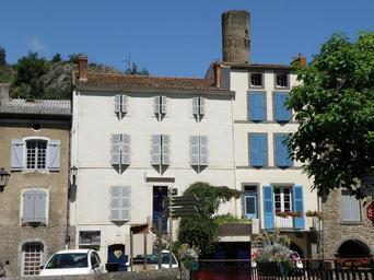| Keywords: Saint-Floret9.JPG fr Saint-Floret comm du Puy-de-Dôme Auvergne France Maisons sises le long de la départementale n° 26 et de la Couze Pavin Donjon du château émergeant de derrière les toits Regard vers le nord self-photographed Torsade de Pointes 2011-07 Saint-Floret Cc-zero |