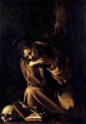 | Keywords: Saint Francis in Meditation-Caravaggio (Cremona).jpg Artwork Creator Caravaggio Saint Francis in Meditation ~ 1604/06 or 1607/10 oil canvas Size cm 90 130 Museo Civico Cremona object history credit line accession number scan PD-old-100 <gallery> File CaravaggioFrancisContemplation jpg </gallery> Saint Francis in Prayer by Caravaggio |
