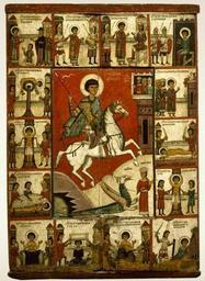 | Keywords: Saint George (14th c., GRM).jpg ЧУДО СВЯТОГО ГЕОРГИЯ О З ИЕ С ЖИТИЕ Пе вая половина XIV века овго од Де ево; темпе а 89 5 х 63 0 х 2 5 Поступила в 1897 году из АХ До 1851 года находилась в соб ании П Погодина осква затем в Синодальной изнице и и ова енной палате осковского К емля откуда в составе всей коллекции в 1870 году была пе едана в АХ Раск ыта до поступления в музей повто но в 1912 году в ГР Г И Чи иковым ГР инв ДРЖ-2118 http //www svyatayarus ru/data/icons/90_chudo_o_zmie/index php Пе вая половина XIV века 14 Exhibition Sainte Russie Moscow 2011 - icons Miracle of Saint George vita icon 14th c Russian Museum Files uploaded by Shakko from various sources PD-Art |