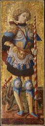 | Keywords: Saint George - Carlo Crivelli.jpg Artwork Creator Carlo Crivelli 1472 tempera wood with gold ground in 38 13 25 Institution Metropolitan Museum of Art http //www metmuseum org/Collections/search-the-collections/110003397 rpp 20 pg 1 gallerynos 606 ft pos 20 Metropolitan Museum of Art Other versions PD-100 Assessments Assessments 1 Saint George Saint George 1472 paintings 1472 polyptych by Carlo Crivelli Paintings uploaded by Chris Woodrich Paintings of Saint George and the Dragon Tempera on panel Decorative patterns |