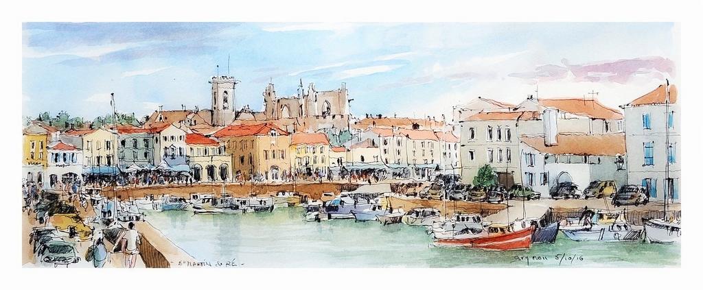 | Keywords: saint martin saintmartin saint martin de ré saintmartinderé port harbour bateaux ships croquis sketch watercolour watercolor bic panoramique panoramic drawing skyline croquis bic et aquarelle sur carnet panoramique Moleskine d'après photo / bic and wash sketch on a Moleskine sketchbook after a photo croquis bic et aquarelle sur carnet panoramique Moleskine d'après photo / bic and wash sketch on a Moleskine sketchbook after a photo | ||||