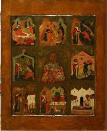 | Keywords: Saint Nicholas vita icon (Yaroslav, 17th c, Belarus).jpg ru Пе вая т еть XVII века Де ево темпе а; 58 5 х 47 Инв ЯХ И-585 П оисходит из це кви Димит ия Солунского в Я ославле Поступила в 1970 году Рестав и овалась в 2003 году Л Д Рыбцевой 1 Рождество иколая Чудотво ца 2 П иведение во учение 3 Избавление Дмит ия от потопления 4 Явление иколая Чудотво ца т ем воеводам в темнице 5 Исцеление бесноватого 6 Избавление т ех мужей от казни 7 Избавление Аг икова сына Василия из са ацинского плена 8 Пог ебение иколая Чудотво ца 1600 1635 extracted from http //www artmuseum by/flash/VirtualVistavka_Ikoni_loder html author Institution Belarusian National Arts Museum Custom license marker 2013 09 04 PD-Art Uploaded with UploadWizard Icons of Saint Nicholas from Russia Saint Nicholas hagiography icons 17th-century icons of Russia Icons of Yaroslavl Icons in Yaroslavl Art Museum Exhibition Patron saints in the Orthodox iconography 16-19th centuries |