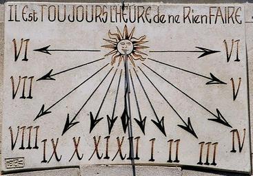 | Keywords: Saint-remy-de-provence-cadran-solaire.jpg A sundial in Saint-Rémy-de-Provence France SunhorloÄ o Un cadran solaire à Saint-Rémy-de-Provence en France Zegar sÅ‚oneczny ---- IL Est TOUJOURS L'HEURE de ne Rien FAIRE It is always time to do nothing 43 47 24 N 04 49 57 E This is for the village not the sundial Self-made in 2002 Photo personnelle en 2002 Sundial date unknown Date du cadran inconnue Greudin Vertical sundials in Bouches-du-Rhône French sundial mottos Saint-Rémy-de-Provence French inscriptions |