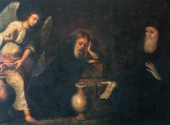 | Keywords: Saint Theophilus and John, brothers of Kyiv Caves.jpg Brothers Saint Theophilus and Saint John of Kyiv Caves monastery Orthodox saints 12 century Ukraine Феофіл Сльозоточивий б ат Йоана 11 - 12 століття Київ п авославний святий Че нець Пече ського монасти я П еподобний Згідно з Пате иком Пече ським п п Феофіл був ста шим б атом п п Йоана також пече ського ченця Оскільки вони не хотіли озлучатися і після сме ті то поп осили а ка Г обокопача п иготувати для них спільне місце поховання Коли Іоанн поме він був похований у пече і на ве хньому місці де Феофіл мав бути похований як ста ший Коли Феофіл це побачив він почав до ікати а ку за те що той поклав покійного на його місце П еподобний а ко наказав небіжчикові піднятися й пе елягти на нижче місце а Феофілу п овістив що той незаба ом пом е Таке чудо спонукало Феофіла до каяття за свої го дощі Він почав постійно постити і каятись чекаючи сме тної години Від безупинної ско боти й постійного плачу він осліп п оз івши за пе едсме тним п о оцтвом того ж п п а ка за т и дні до своєї кончини Його мощі спочивають у Ближніх пече ах Пам'ять 11 жовтня і 11 січня Kyiv Caves Lavra 19-th century or earlier Unknown Orthodox icon painter PD-old-100 Saints of Kyiv Caves Monastery |