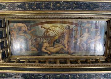 | Keywords: Sala degli elementi, crono, tra allegorie, mutila urano per originare i 4 elementi, di vasari, c. gherardi e m. da faenza 01.JPG Artwork Q5489695 Creator Giorgio Vasari Cronus Saturn castrates his father Uranus the Greek sky god before Zeus Cronus Saturno castra a su padre Uranus el dios griego del cielo antes de Zeus Cronos le Saturne des latins castre son père Ouranos le dieu grec du ciel avant Zeus Crono Saturno castra suo padre Urano il dio greco del cielo prima di Zeus Castració d'Urà fresc de Giorgio Vasari Entire painting century 16 Oil on panel Palazzo Vecchio Florence Ceiling of the room of the Elements object history exhibition history credit line accession number own Artwork PD-old-100 Photograph cc-by-3 0 <gallery> Sala degli elementi Aria Saturno mutila il Cielo JPG Sala degli elementi crono tra allegorie mutila urano per originare i 4 elementi di vasari c gherardi e m da faenza 02 JPG Sala degli elementi crono tra allegorie mutila urano per originare i 4 elementi di vasari c gherardi e m da faenza 03 JPG Sala degli elementi crono tra allegorie mutila urano per originare i 4 elementi di vasari c gherardi e m da faenza 04 JPG The Mutiliation of Uranus by Saturn jpg </gallery> Date photographed 2014-04-16 16 21 23 Uploaded with UploadWizard Photographs by User Sailko Palazzo Vecchio - Sala degli Elementi - Air ceiling |