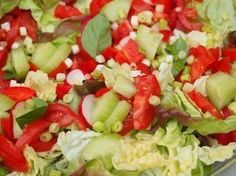 Keywords: salad mixed salad cucumber tomato radishes healthy vitamins food eat red green