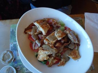 Keywords: Salad with chicken and onions and other ingredients.jpg en Main dish with chicken and cheese at a restaurant in New Providence New Jersey 2016-10-07 12 49 25 own Tomwsulcer other versions cc-zero Salads of the United States