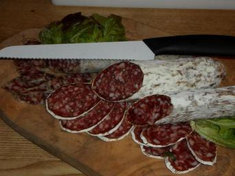 Keywords: salami sliced discs sausage sausage slices sausage wheel wurstplatte vespers vesperbrett substantial arranged delicious food
