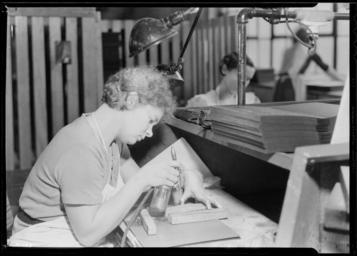 | Keywords: nara:arcid=532747 u.s. national archives usnationalarchives lewis hine lewishine blackandwhite monochrome photo border wedding black and white Original Caption: Sallie Collins, Surgoinsville, Tennessee. She is a super- finish operator at the Kingsport Press. This operation, the application of gold with an air gun on the cover design, calls for a moderate amount of skill. This operator has been working at the plant two months and has been on this particular operation three days, November 1933 U.S. National Archives’ Local Identifier: 142-H-129 Photographer: Hine, Lewis Subjects: New Deal, 1933-1939 Rural areas Tennessee (United States, North and Central America) state Water projects Persistent URL: research.archives.gov/description/532747 Repository: Still Picture Records Section, Special Media Archives Services Division (NWCS-S), National Archives at College Park, 8601 Adelphi Road, College Park, MD, 20740-6001. For information about ordering reproductions of photographs held by the Still Picture Unit, visit: www.archives.gov/research/order/still-pictures.html Reproductions may be ordered via an independent vendor. NARA maintains a list of vendors at www.archives.gov/research/order/vendors-photos-maps-dc.html Access Restrictions: Unrestricted Use Restrictions: Unrestricted Original Caption: Sallie Collins, Surgoinsville, Tennessee. She is a super- finish operator at the Kingsport Press. This operation, the application of gold with an air gun on the cover design, calls for a moderate amount of skill. This operator has been working at the plant two months and has been on this particular operation three days, November 1933 U.S. National Archives’ Local Identifier: 142-H-129 Photographer: Hine, Lewis Subjects: New Deal, 1933-1939 Rural areas Tennessee (United States, North and Central America) state Water projects Persistent URL: research.archives.gov/description/532747 Repository: Still Picture Records Section, Special Media Archives Services Division (NWCS-S), National Archives at College Park, 8601 Adelphi Road, College Park, MD, 20740-6001. For information about ordering reproductions of photographs held by the Still Picture Unit, visit: www.archives.gov/research/order/still-pictures.html Reproductions may be ordered via an independent vendor. NARA maintains a list of vendors at www.archives.gov/research/order/vendors-photos-maps-dc.html Access Restrictions: Unrestricted Use Restrictions: Unrestricted |