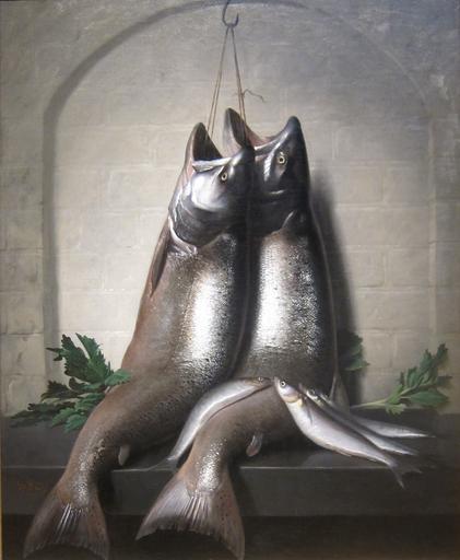 | Keywords: 'Salmon Trout and Smelt' by Samuel Marsden Brookes, 1873.JPG en Salmon Trout and Smelt oil on canvas painting by Samuel Marsden Brookes 1873 De Young Museum own Wmpearl 1873 American paintings in the De Young Museum Samuel Marsden Brookes Trouts in art Oncorhynchus mykiss Cc-zero |