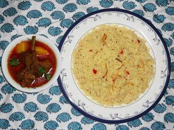 Keywords: Saloonay Chawal With Aloo Gosht.JPG en سلونے چاول آلو گوشت کے ساتھ own Miansari66 Cuisine of Karachi Cuisine of Punjab India made by User Miansari66 Cuisine of Pakistan Cc-zero