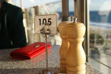 Keywords: salt and pepper shakers seaside table dining ocean restaurant outdoor view