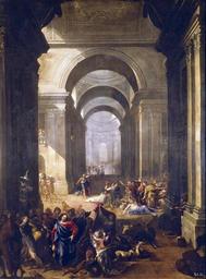 | Keywords: Salvador gomez-expulsion-prado.jpg La obra representa a Jesucristo expulsado a los mercaderes del Templo de Jerusalén ~ 1670 oil on canvas Size cm 101 135 Institution Museo del Prado https //www museodelprado es/coleccion/obra-de-arte/expulsion-de-los-mercaderes-del-templo/fe6e3f94-c529-49af-8c27-f7f1f12ca83c accession number P02661 https //content3 cdnprado net/imagenes/Documentos/imgsem/fe/fe6e/fe6e3f94-c529-49af-8c27-f7f1f12ca83c/d32342c6-c2b7-46d9-a9f0-ce3bb36c0ed8 jpg PD-old-100 Paintings of the Cleansing of the Temple in Spain 17th-century paintings of the Cleansing of the Temple Vicente Salvador Gómez Spanish Baroque paintings in the Museo del Prado Salvador Gomez 17th-century paintings in the Prado Museum 1670s paintings in Spain |